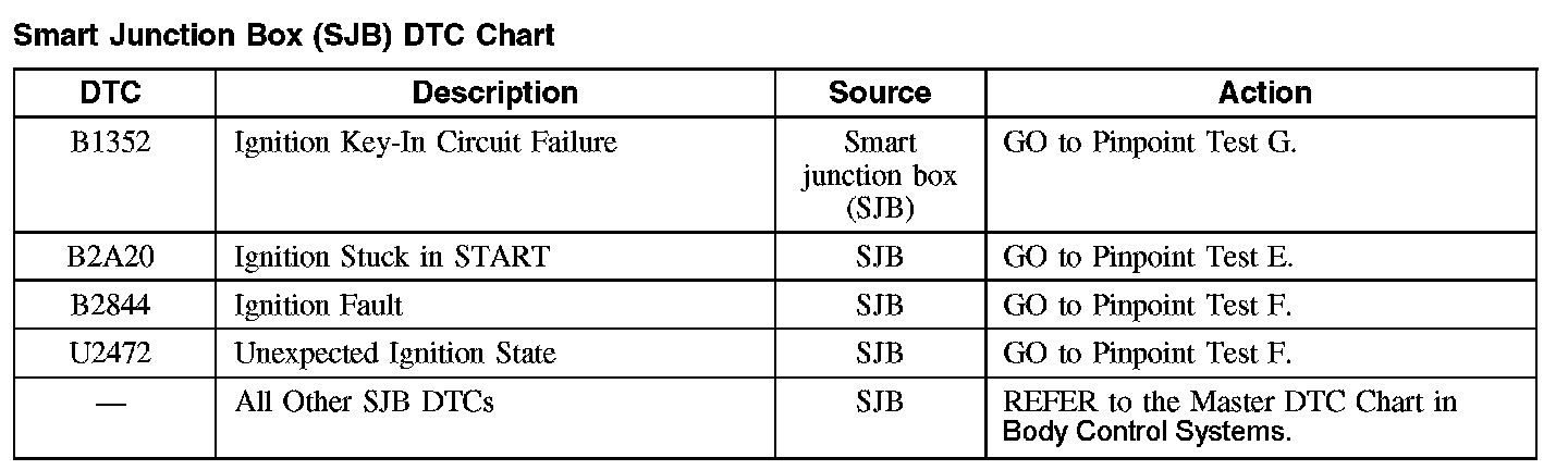 Smart Junction Box (SJB) DTC Chart