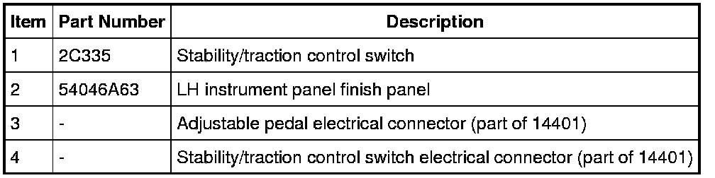 2. Depress the 2 tabs and remove stability/traction control switch from the LH instrument panel trim panel.