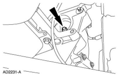 38. Install the selector lever cable bracket.