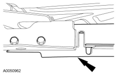 15. Position the RH side of the transmission support crossmember into the transmission support crossmember pocket and loosely install the bolts.