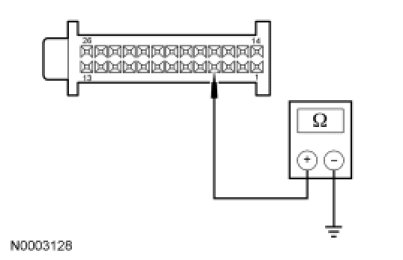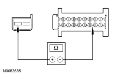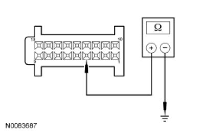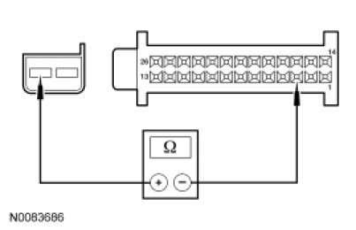 - Measure the resistance between HVAC module - EATC C228b-4, circuit VH414 (GN/BU), harness side and ground.