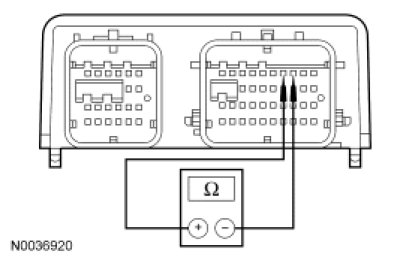 - Measure resistance between driver side air bag C328-2, circuit CR105 (GN/BU), harness side and C328-1, circuit RR105 (GY/YE), harness side.