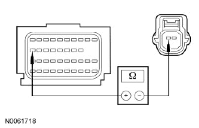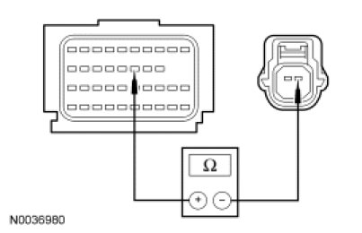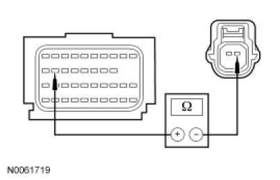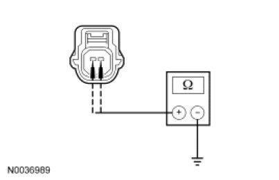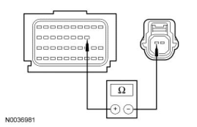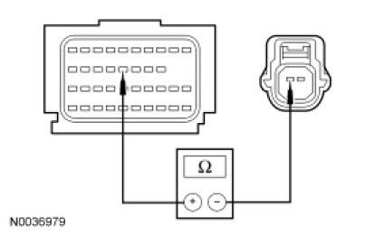 - Measure the resistance between second row driver side impact sensor C3059-1, circuit VR219 (GN/WH), harness side and C3059-2, circuit RR133 (GY/BN), harness side.