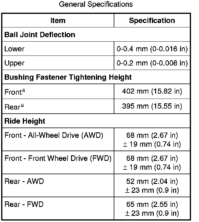 Ball Joint Deflection / Bushing Fastener Tightening Height / Ride Height