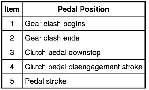 - Stop and hold the clutch pedal when the gear clash stops. Measure the distance from when gear clash stops to the pedal fully depressed position. The difference between the measurement taken when the gear clash stopped and the measurement taken at the downstop is the clutch reserve.
