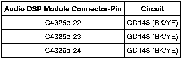 - Measure the resistance between the audio DSP module, harness side and ground as follows:
