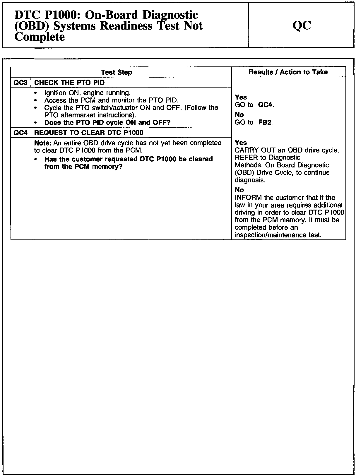 QC - DTC P1000: On-Board Diagnostic (OBD) Systems Readiness Test Not Complete