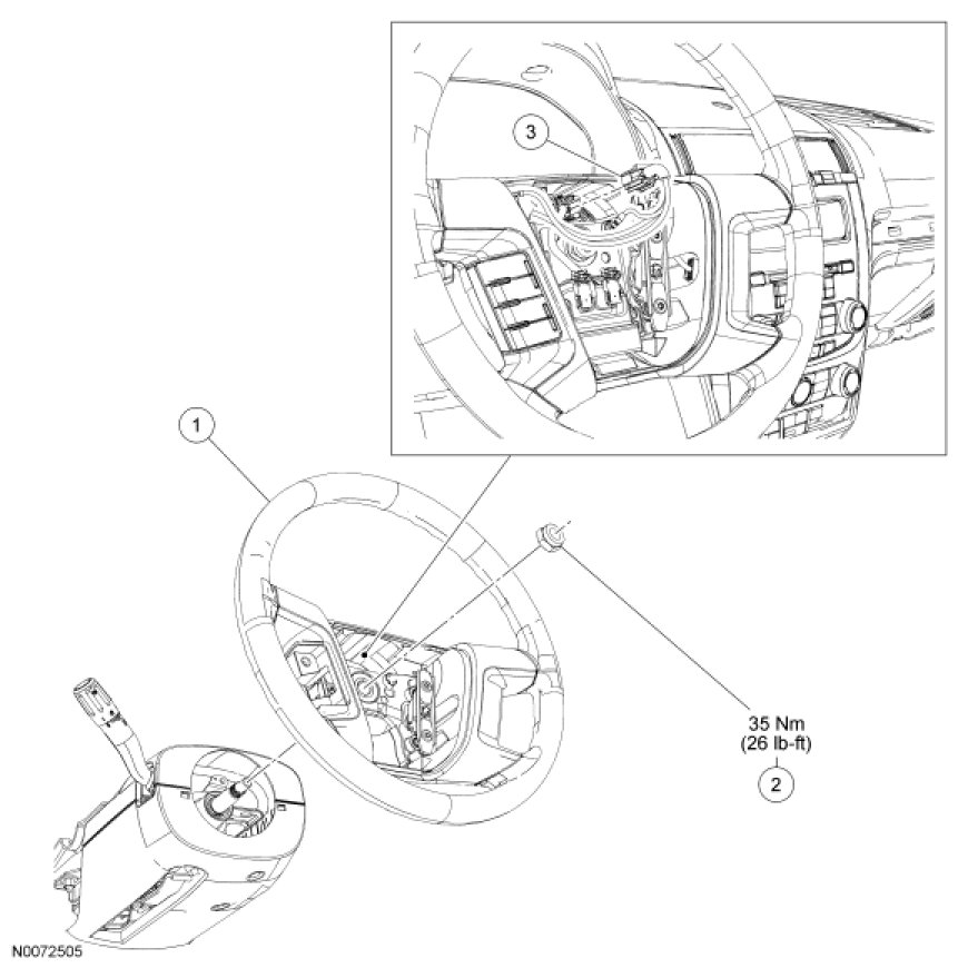 7. Install the driver air bag module. For additional information, refer to Air Bag Systems.