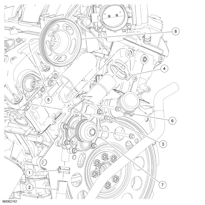 6. Disconnect the coolant pump-to-engine hose and position aside.