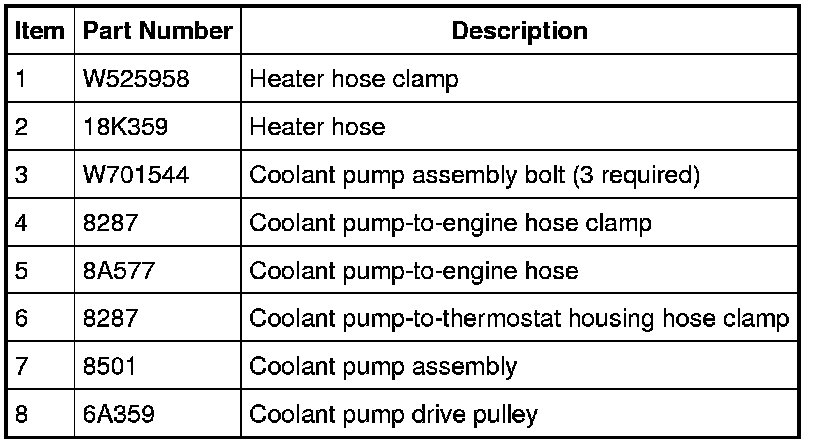 8. Reposition the coolant pump-to-thermostat housing hose clamp and remove the coolant pump and hose as an assembly.
