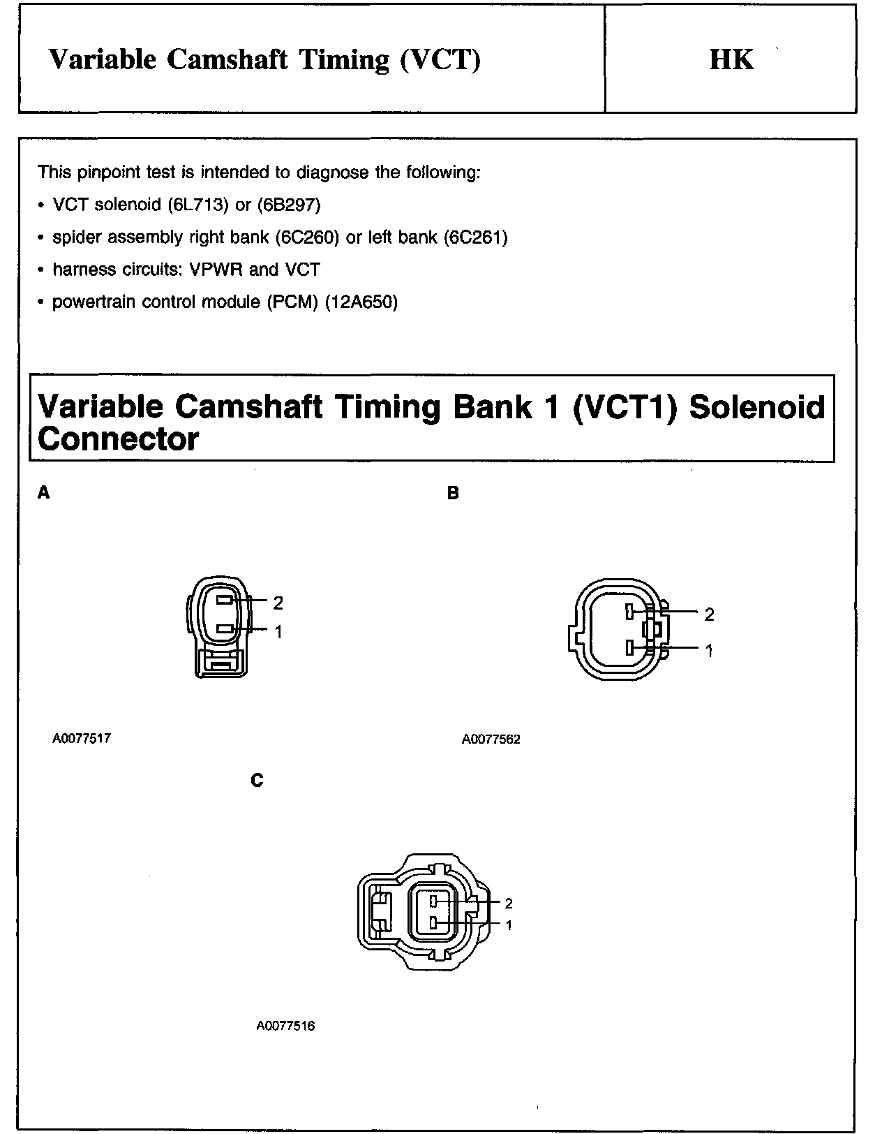 PINPOINT TEST HK: VARIABLE CAMSHAFT TIMING (VCT)