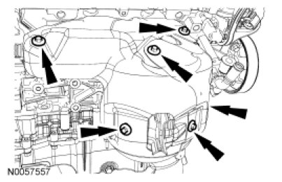62. Remove the 5 torque converter housing bolts and remove the transmission.