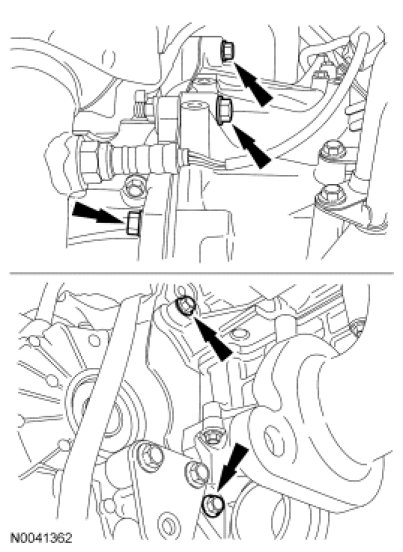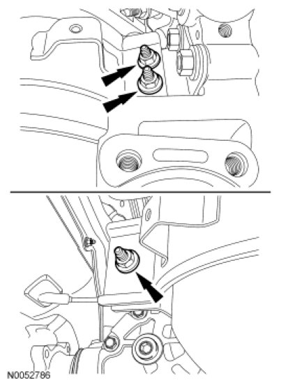 47. Remove the 5 bolts and the Power Transfer Unit (PTU) support bracket.