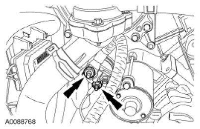 Remove the 2 bolts from the engine roll restrictor bracket.