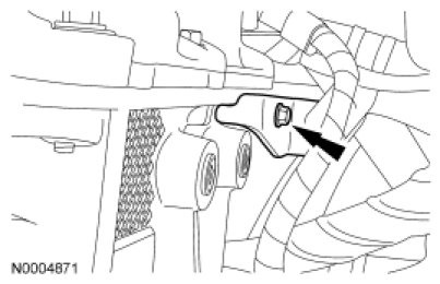 15. Remove the bolt from the power steering line bracket and position it aside.