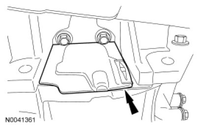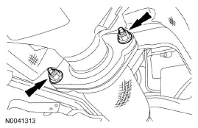 19. Remove the pin-type retainers and remove the LH front structure to subframe splash shield.