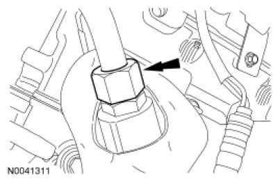 63. If installing a new transaxle, the transmission fluid cooler will need to be backflushed and cleaned. Carry out transmission fluid cooler backflushing and cleaning. For additional information, refer to Transmission Fluid Cooler - Backflushing and Cleaning Aisin AW21.