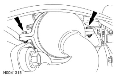 25. If equipped, remove the 2 bolts and the roll restrictor heat shield.