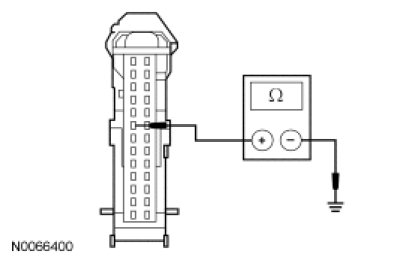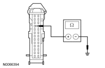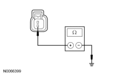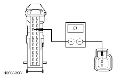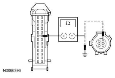 - Measure the resistance between the SJB C2280c-8, circuit CRT19 (GN/VT), harness side and ground.
