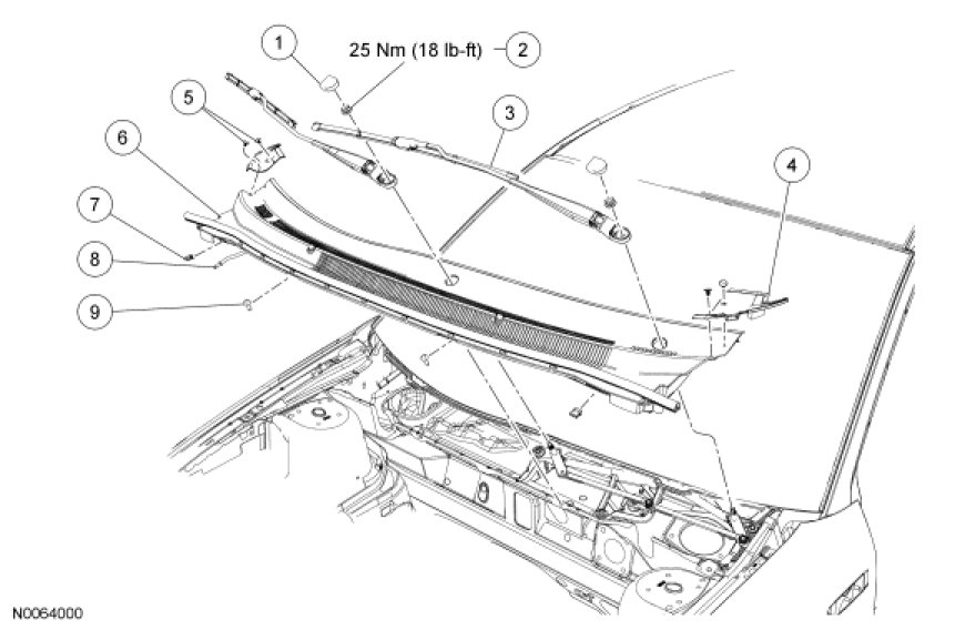 - Start from the driver side and work the cowl trim panel off, moving across the panel from the LH to the RH side to remove.