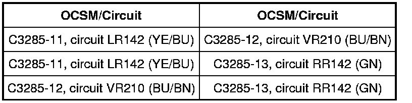 - Measure the resistance between OCSM C3285, harness side using the following chart.