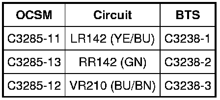- Measure the resistance between OCSM C3285, harness side and BTS C3238, harness side using the following chart.