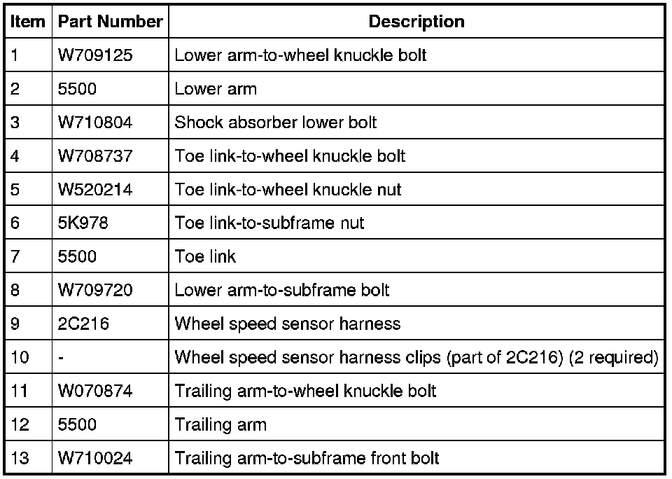 3. Remove and discard the trailing arm-to-wheel knuckle bolt.