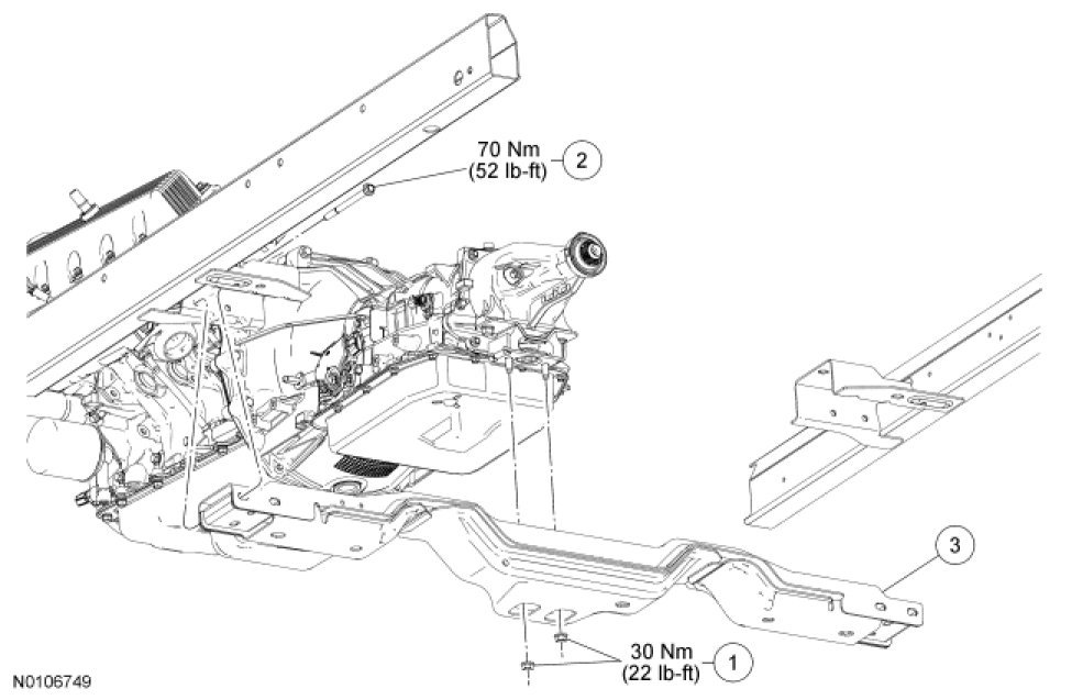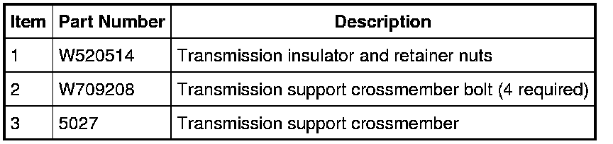 1. Position the LH side of the transmission support crossmember into the transmission support crossmember pocket and loosely install the bolts.