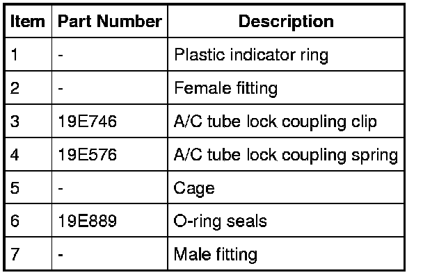 - A plastic indicator ring is used on the spring lock couplings of the A/C evaporator core to indicate, during vehicle assembly, that the coupling is connected. Once the coupling is connected, the indicator ring is no longer necessary, but remains captive by the coupling near the cage opening.