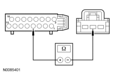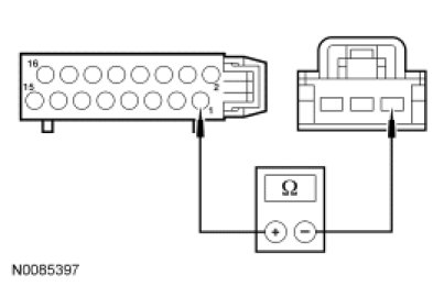 - Measure the resistance between in-line C237-1, circuit 436 (RD/LG), body harness side and in-line C237-3, circuit 600 (DB), body harness side.