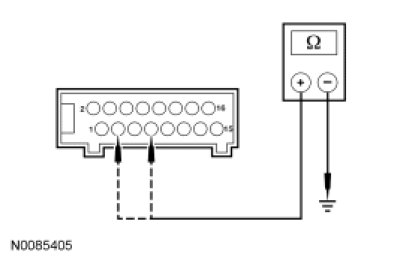 - Measure the resistance between in-line C237-5, circuit 57 (BK), instrument panel harness side and ground.