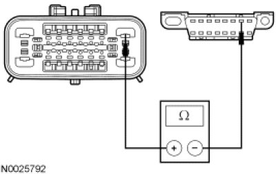 - Measure the resistance between the FSSM C3281a-16, circuit 1827 (WH/LG), harness side and the DLC C251-6, circuit 1827 (WH/LG), harness side.