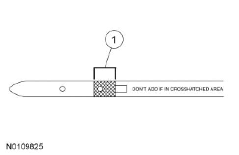 1. Using the scan tool with the engine running, check and make sure that the transmission is at normal operating temperature 66-77°C (150-170°F). Check and adjust the transmission fluid level and check for any leaks. If transmission fluid is needed, add fluid in increments of 0.24L (0.5 pt) until the correct level is achieved (fluid should be in the cross-hatched area of the fluid level indicator).