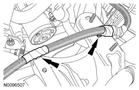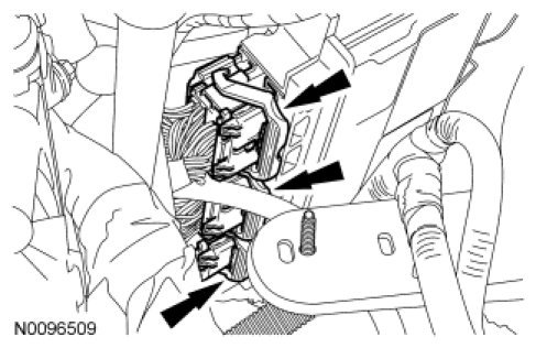 41. Detach the 2 wiring harness retainers from the battery tray bracket and transaxle mount.