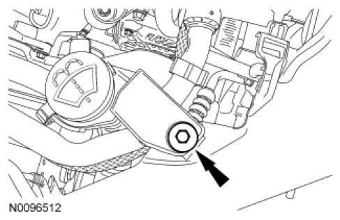 51. Remove the A/C tube/windshield washer bottle bracket bolt.