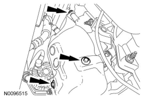 88. Disconnect the 2 transmission electrical connectors and detach the wiring retainer from the stud bolt.