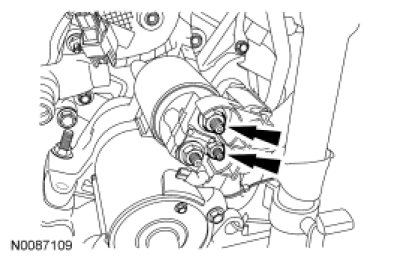 85. Remove the 2 nuts and the starter wiring.