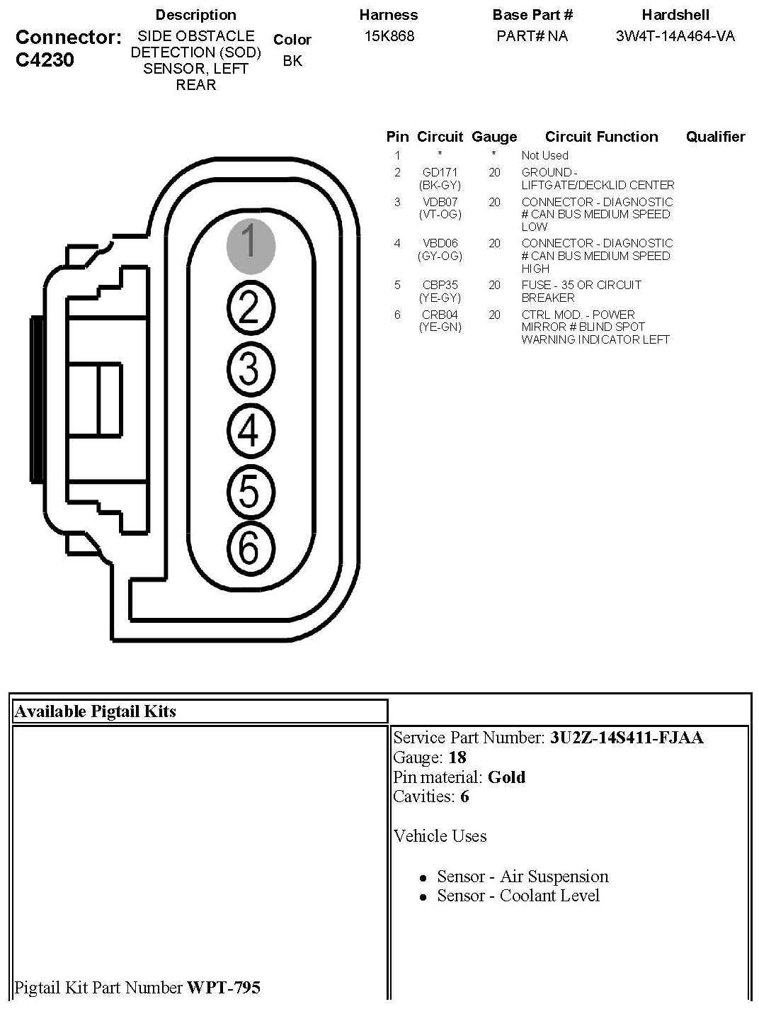 Side Obstacle Detection (SOD) Sensor, Left Rear