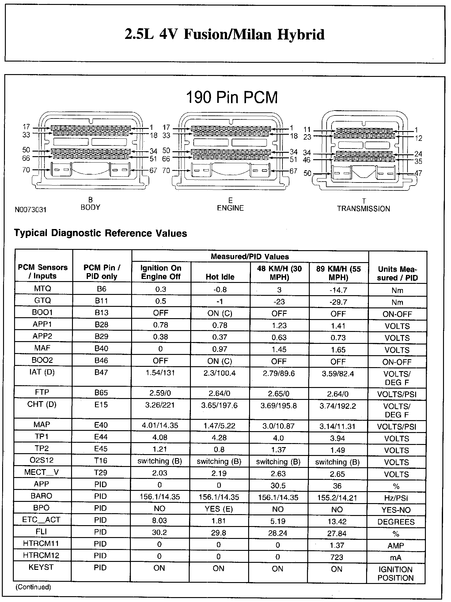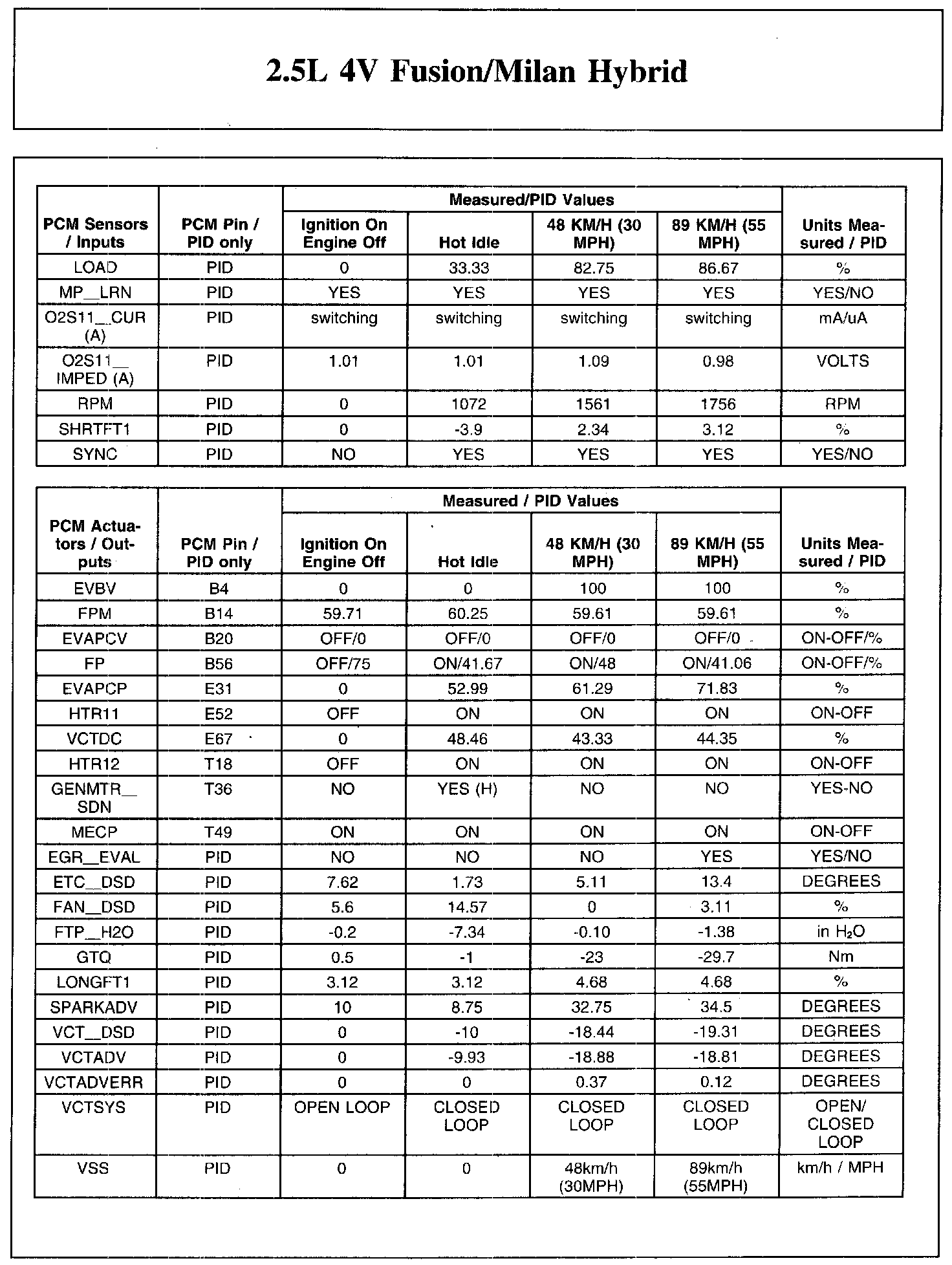 The Typical Diagnostic Reference Value Charts do not display fault parameter identifications (PIDs). These are PIDs which indicate a hard fault with the circuit. They display a value of YES or NO and are PIDs ending with an F.