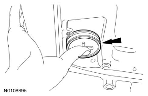 11. NOTE: In order to get an accurate transmission fluid level reading, the vehicle should be on a level surface. Idle the engine to reach the normal operating temperature. Using the scan tool, verify that the transaxle is at normal operating temperature 60°C-70°C (140°F-158°F), prior to adjusting the transmission fluid level.