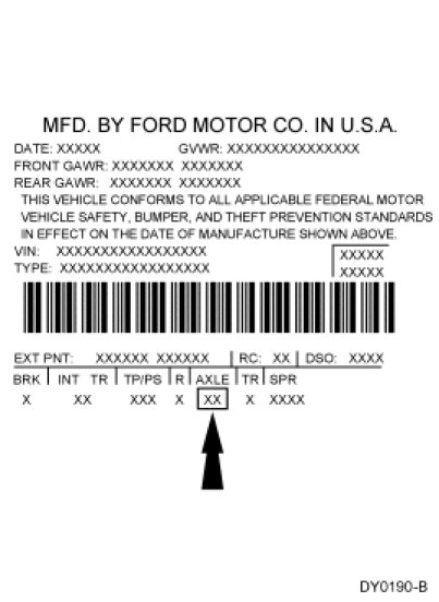 The Vehicle Certification (VC) label is located in the driver door jamb. The axle code is on the VC label. Refer to Vehicle Identification Codes.