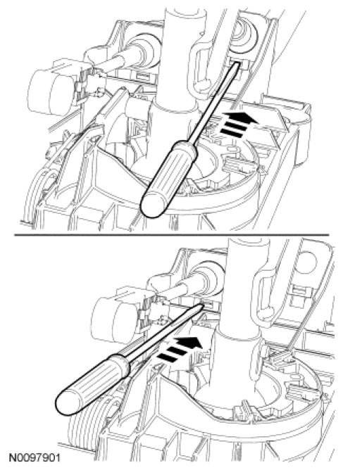 4. NOTE: Carefully pry the retainer on the gearshift cables. Do not damage the gearshift cable retainers.