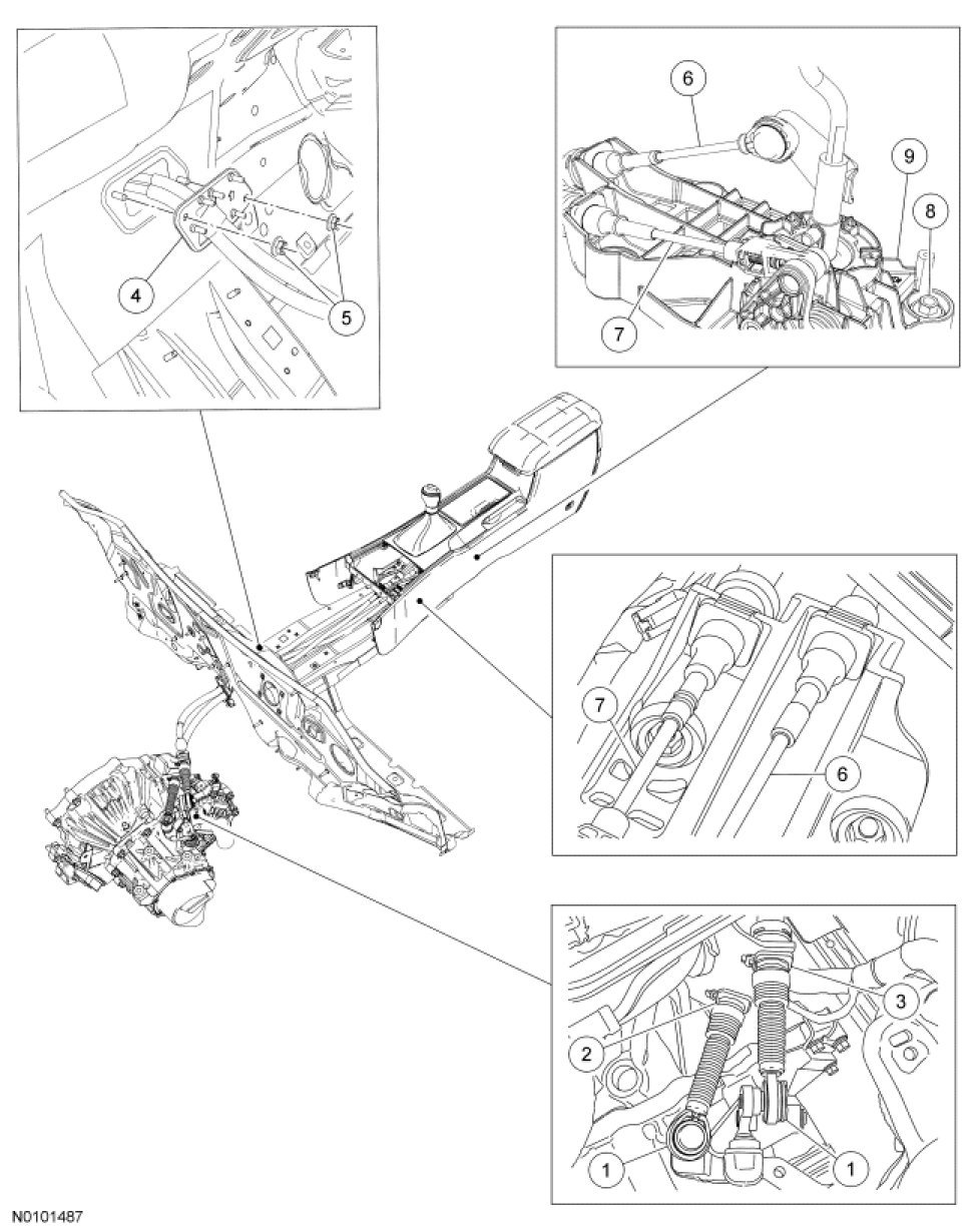 10. Adjust the gearshift cables. For additional information, refer to Manual Transmission/Transaxle &/or Clutch, M/T.