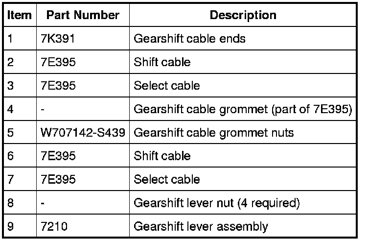 NOTE: The gearshift cable ends and transaxle bracket slots are unique. They can only be fully seated in the correct slot.