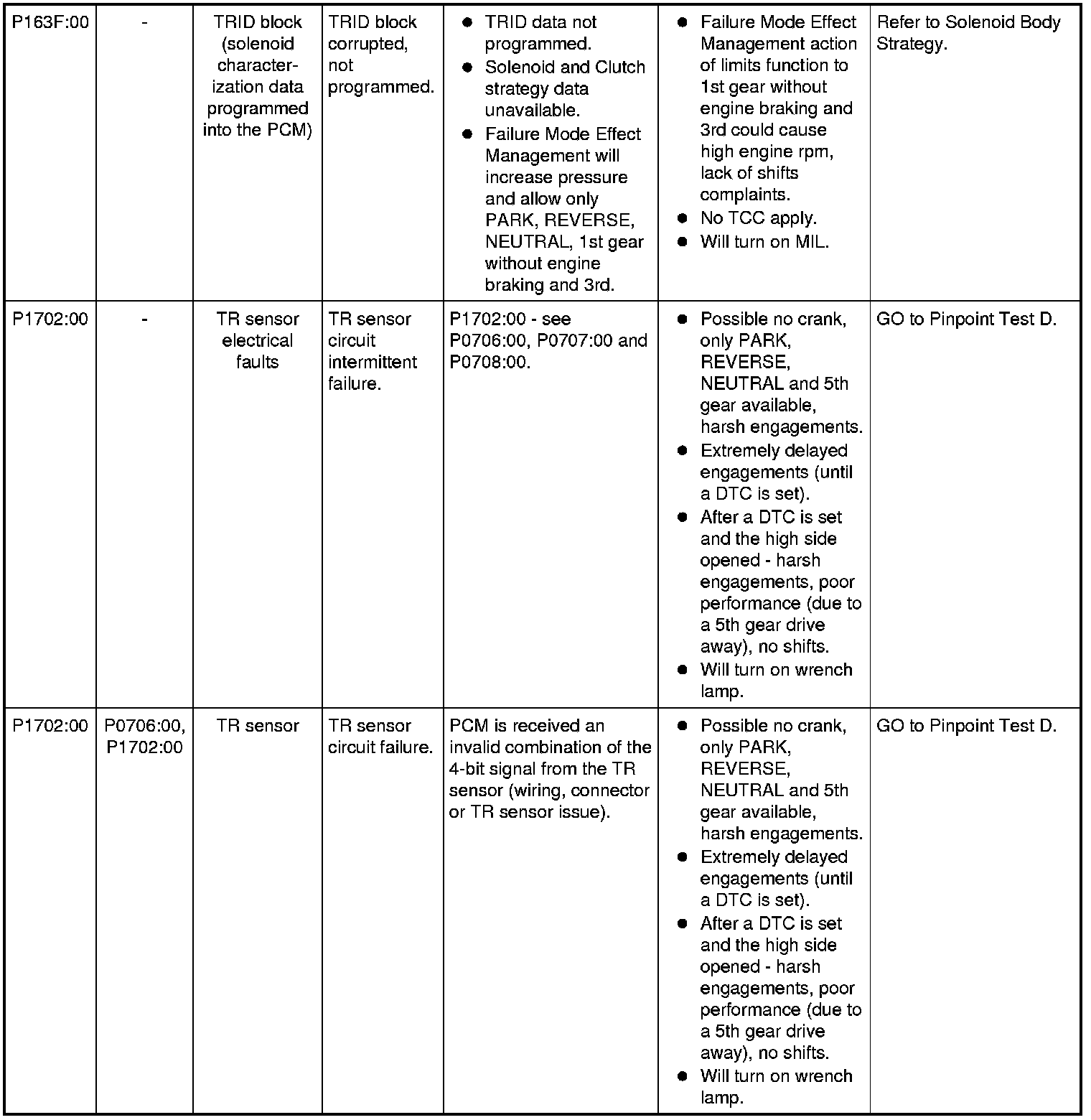 NOTE: This module utilizes a 5-character DTC followed by a 2-character failure type code. The failure type code provides information about specific fault conditions such as opens or shorts to ground. Continuous Memory Diagnostic Trouble Codes (CMDTCs) have an additional 2-character DTC status code suffix to assist in determining DTC history.
