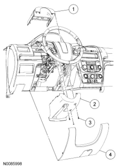 2. NOTE: The steering column opening trim panel is held in place by retaining clips that clip into the instrument panel.