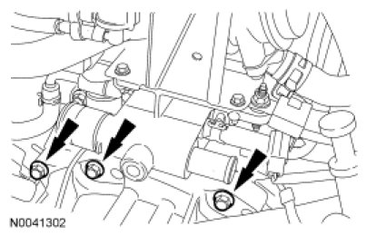 1. Install the transmission fluid cooler tube bracket and the 2 nuts.