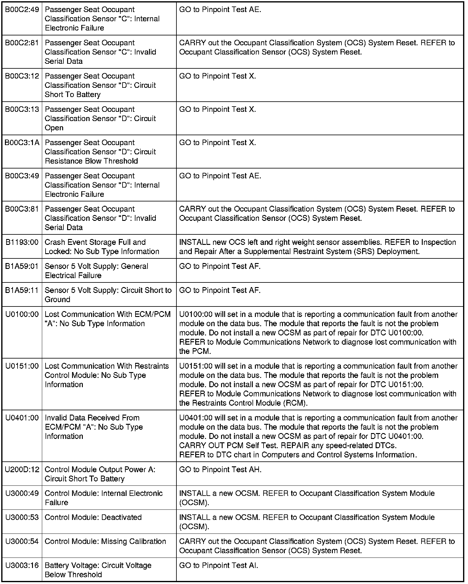 The DTCs can be retrieved from the RCM and the OCSM with a scan tool via the DLC.