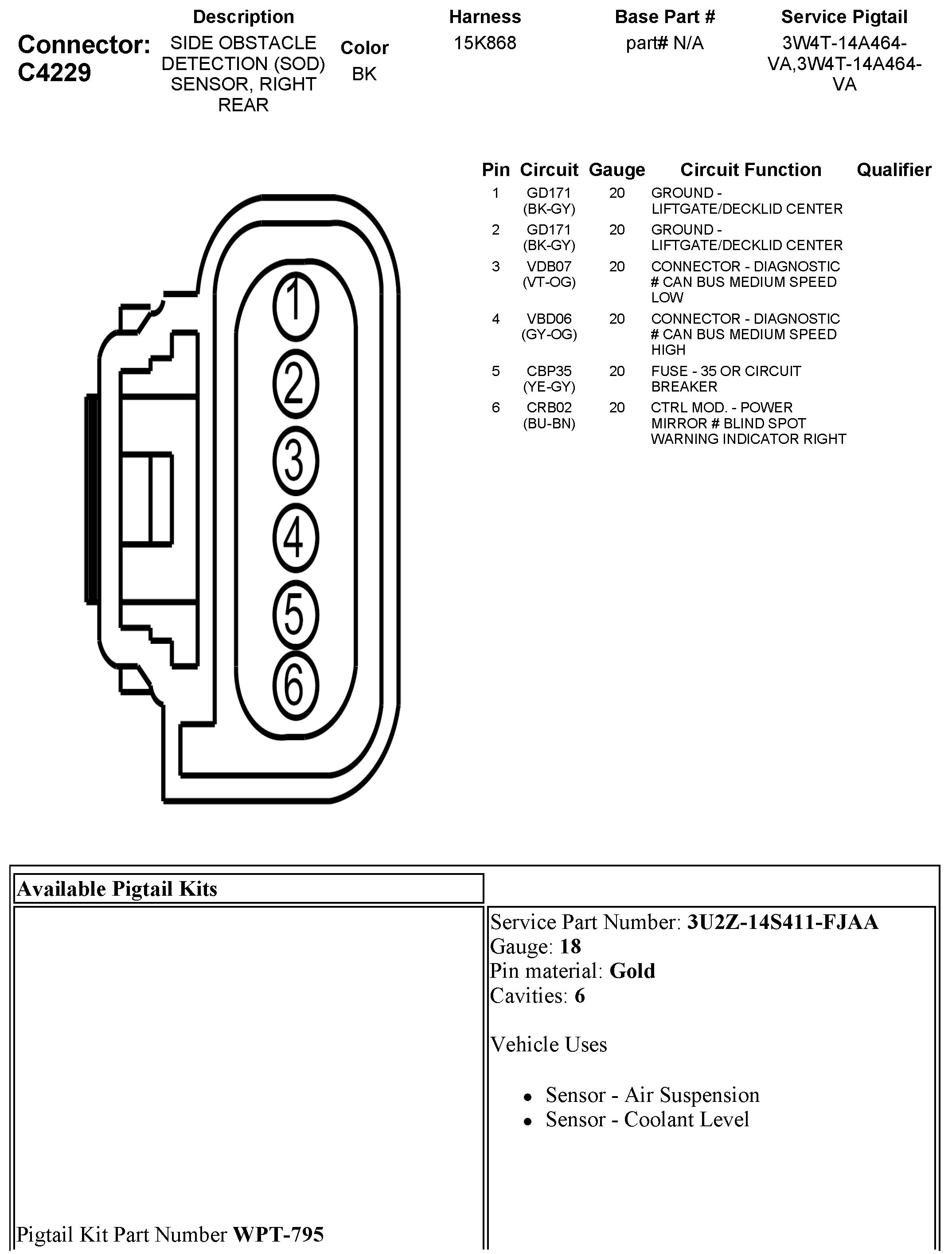 C4229 Side Obstacle Detection (SOD) Sensor, Right Rear