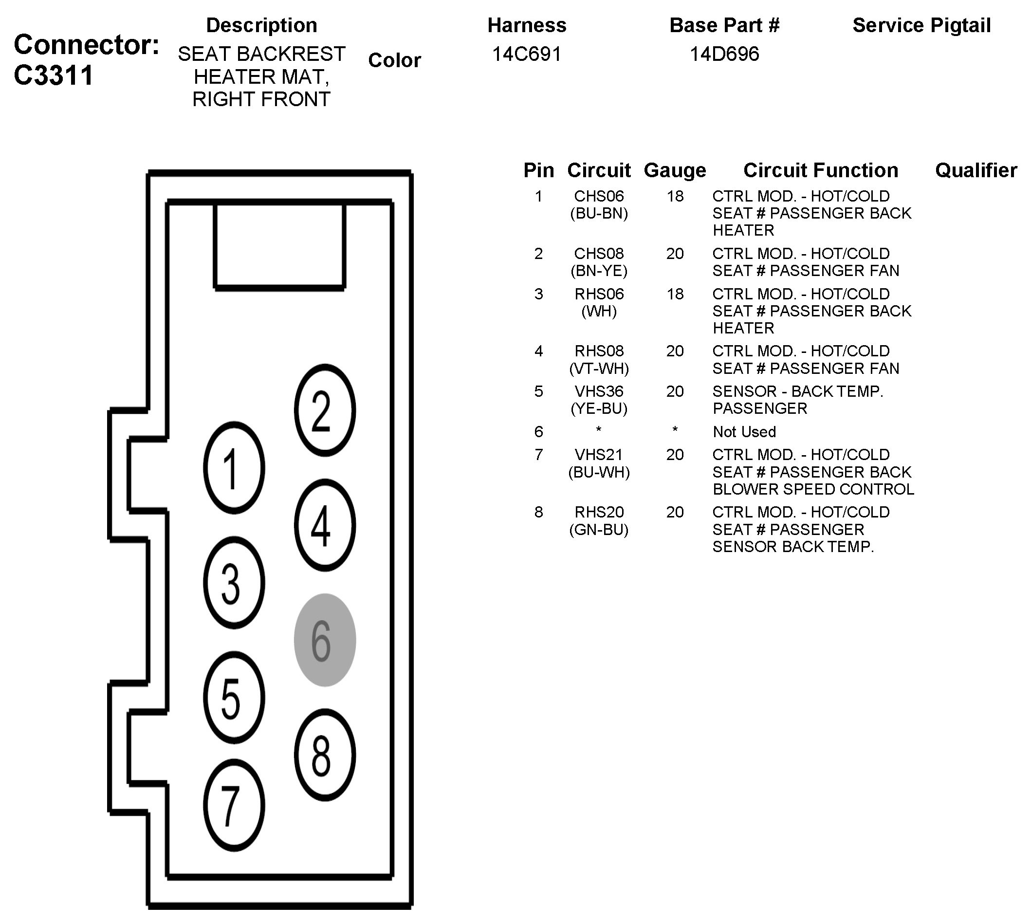 C3311 Seat Backrest Heater MAT, Right Front